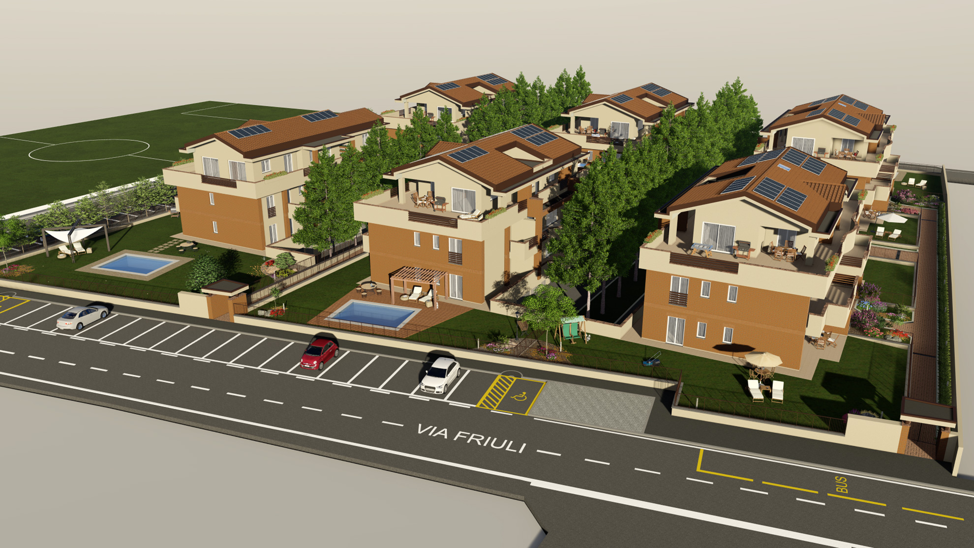 A Lainate, in via Friuli realizziamo 6 palazzine residenziali da 7 unità immobiliari ciascuna, di cui una di sole 6 unità, su 3 piani con box auto e cantine.