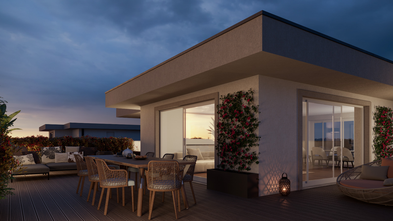 L’attico A10 è posizionato al terzo piano ed è composto da: ingresso, soggiorno-pranzo spazioso con cucina abitabile, tre camere da letto, due bagni di cui uno al servizio della camera matrimoniale, due balconi e cantina al piano interrato.
